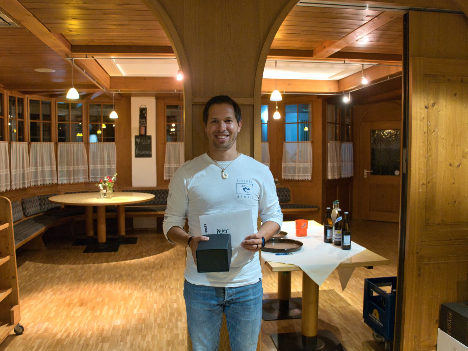 Unser neustes Freimitglied David Tschirky bekam eine gravierte Pfeffermühle.