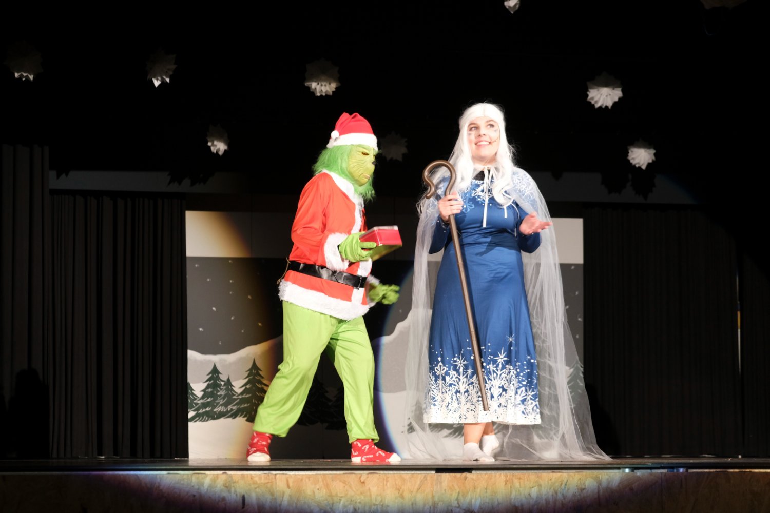 Die chaotische Schmutzlina und die gute Fee führten das Publikum durch den Abend und meisterten verschiedene Hindernisse, unter anderem auch den Grinch der die Weihnachten zerstören wollte. Gemeinsam mit allen Beteiligten kam es am Ende zu einem fröhlichen Happy End, und Weihnachten war trotz verletztem Christkind gerettet.